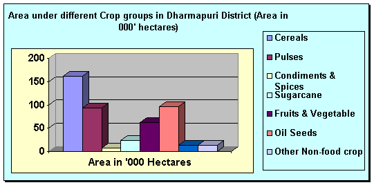 The district economy is mainly agrarian in nature. Except for the Hosur block the dependence on agriculture is conspicuous. Nearly 74 % of the workforce is dependant on agriculture and allied activities. The district is one among most backward and drought prone area in the state. Land brought under cultivation was 3.93 lakh hectares constituting 40.7 % against the state share of 59.2 %. The district constituted the main horticultural belt in the state. It accounts for 12 % of the area under horticulture in Tamilnadu.