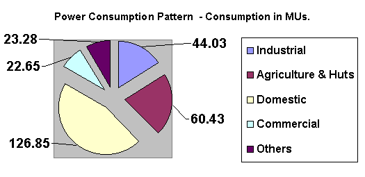 The Domestic sector is the major power consumer in the district, which accounted for 45.75% of the power consumption followed by the agricultural sector, which accounted for 21.80 %.